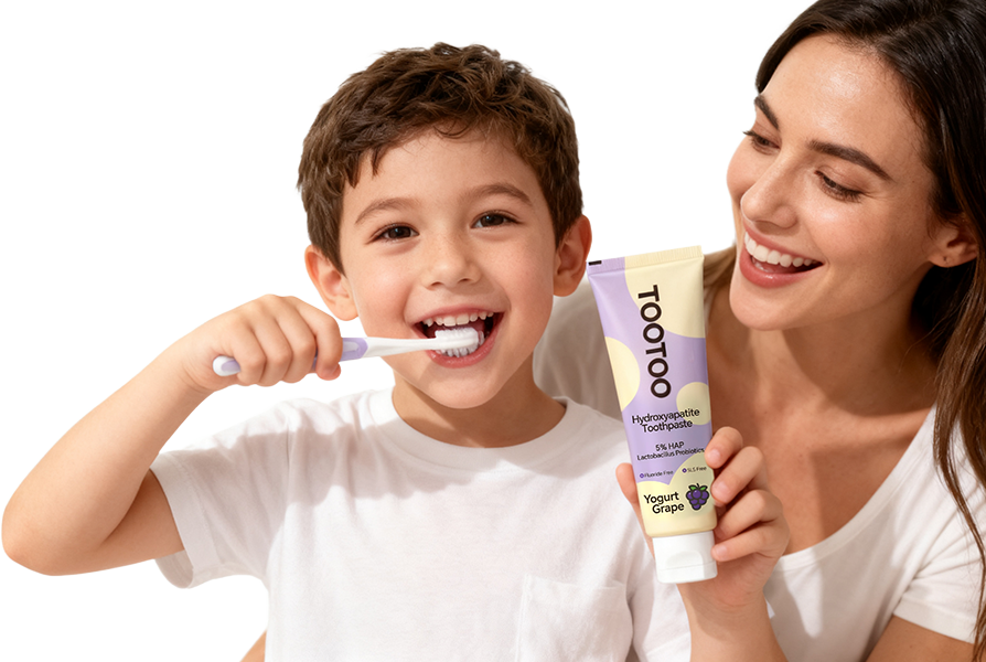 Formulated with gentle hydroxyapatite and probiotics, TOOTOO strengthens and protects little teeth while supporting a healthy oral balance.