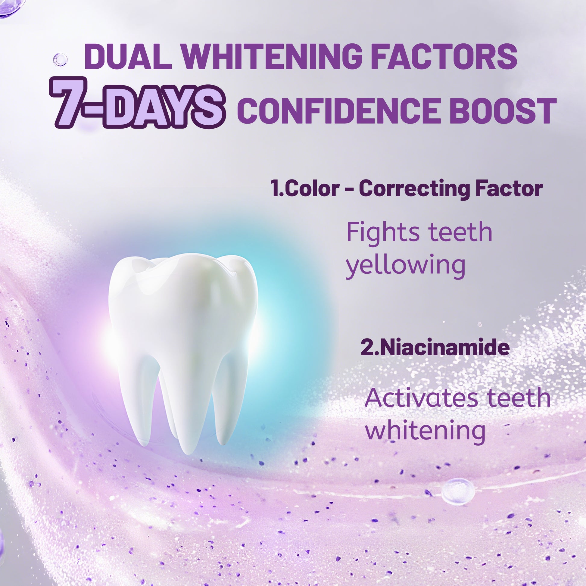 Niacinamide-Powered Brightening: This niacinamide whitening toothpaste is enriched with polishing silica and niacinamide extract to help visibly improve dull or uneven tooth tone. With regular use, it gradually supports a whiter, healthier-looking smile. Results may vary depending on individual oral habits.